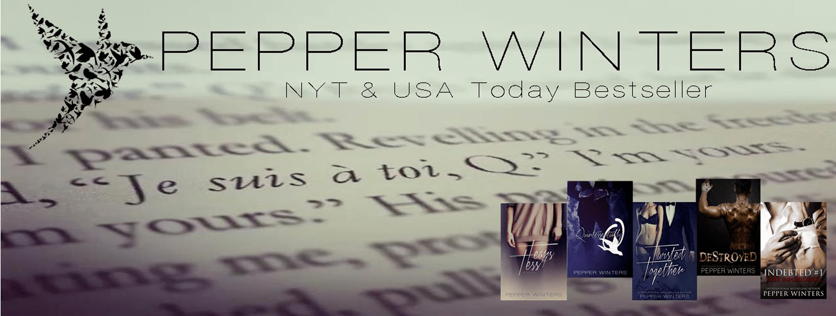 absolutely love your writing. Debt Inheritance is next up on my list. But I must say that whenever people ask for book recommendations, I quickly say Tears of Tess, Q and Twisted. They are by far three of my favorite books right now. I didn’t think I would love the story line. But it was amazing. I read Destroyed before the Tess and Q’s story and I loved it so much that I bought more of your writing. Can’t wait to read more and see what else you have in store for us. Great job Pepper!!